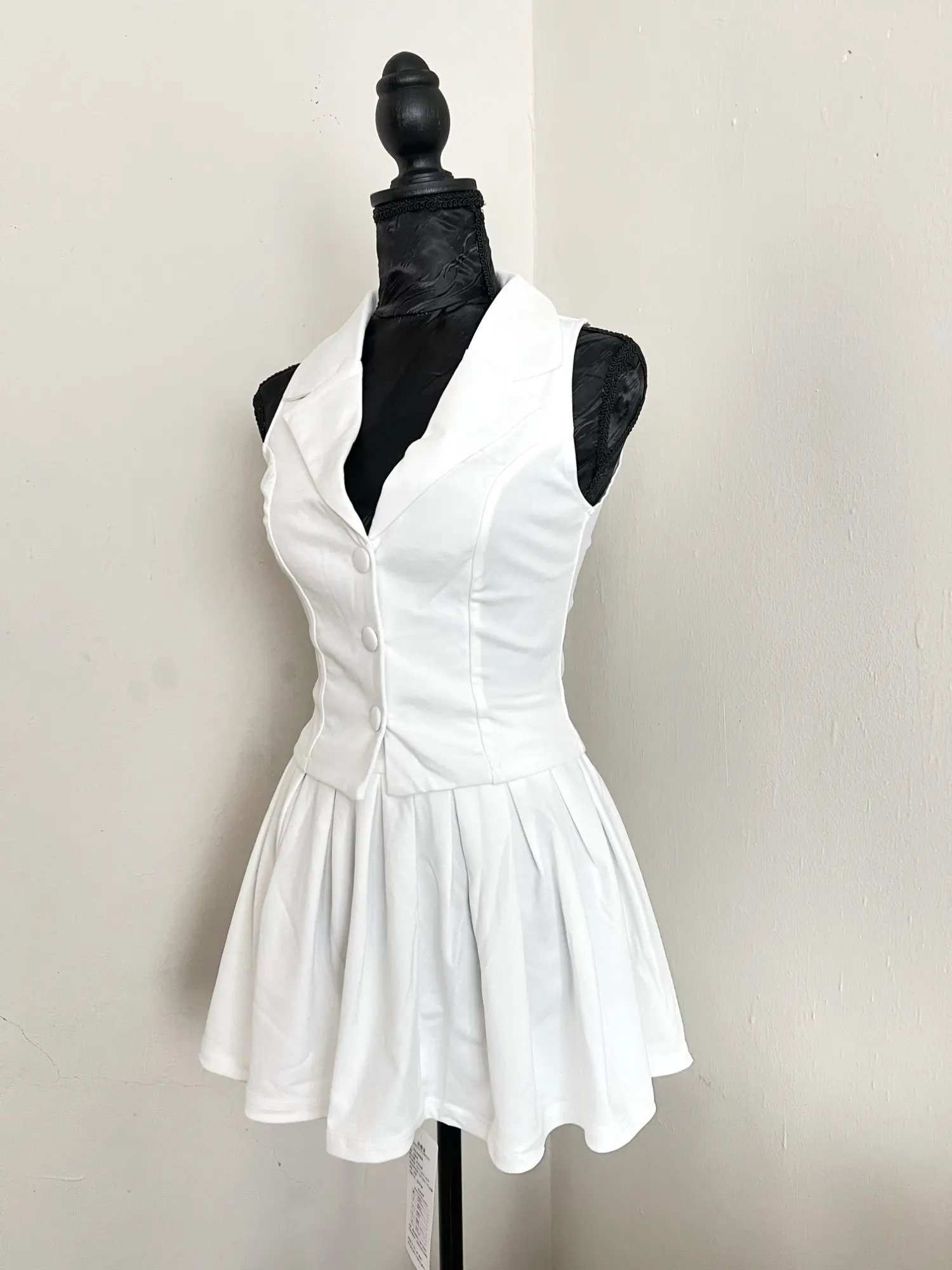 The Aurora V-Neck Two-Piece Set captures the balance between refined elegance and modern edge. Designed with a slim-fit silhouette, it pairs a tailored sleeveless vest with a chic above-knee pleated skirt. Crafted from a blended spandex-polyester fabric, it offers both comfort and structure, making it ideal for transitional autumn-to-winter styling.