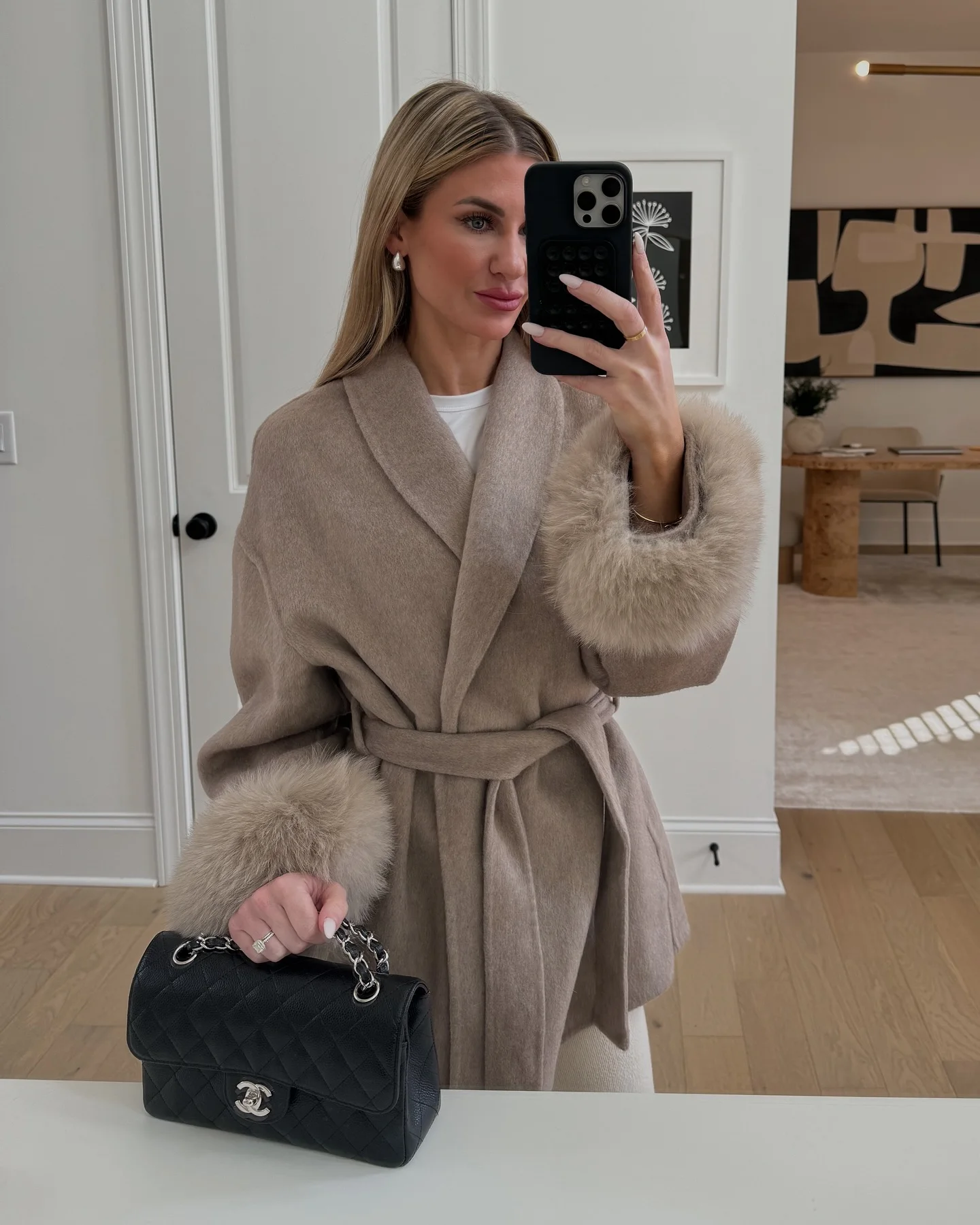 Fe Feeney I am beyond impressed with this wool coat. The stitching is flawless, the material is thick and luxurious without being heavy, and the cut is incredibly flattering.